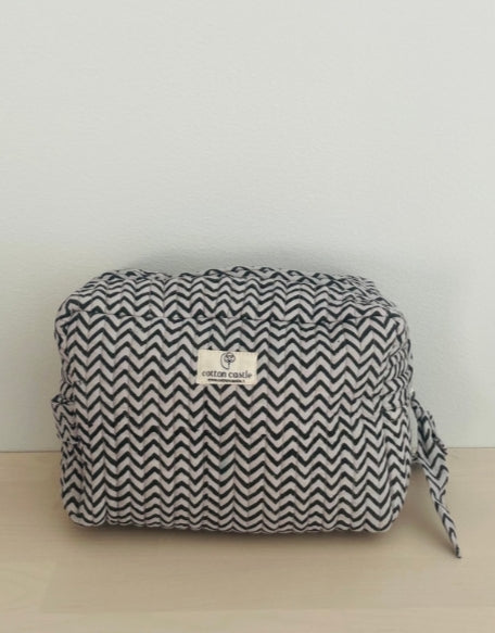 Tämä käsinpainettu toilettilaukku on täydellinen yhdistelmä tyyliä ja käytännöllisyyttä.